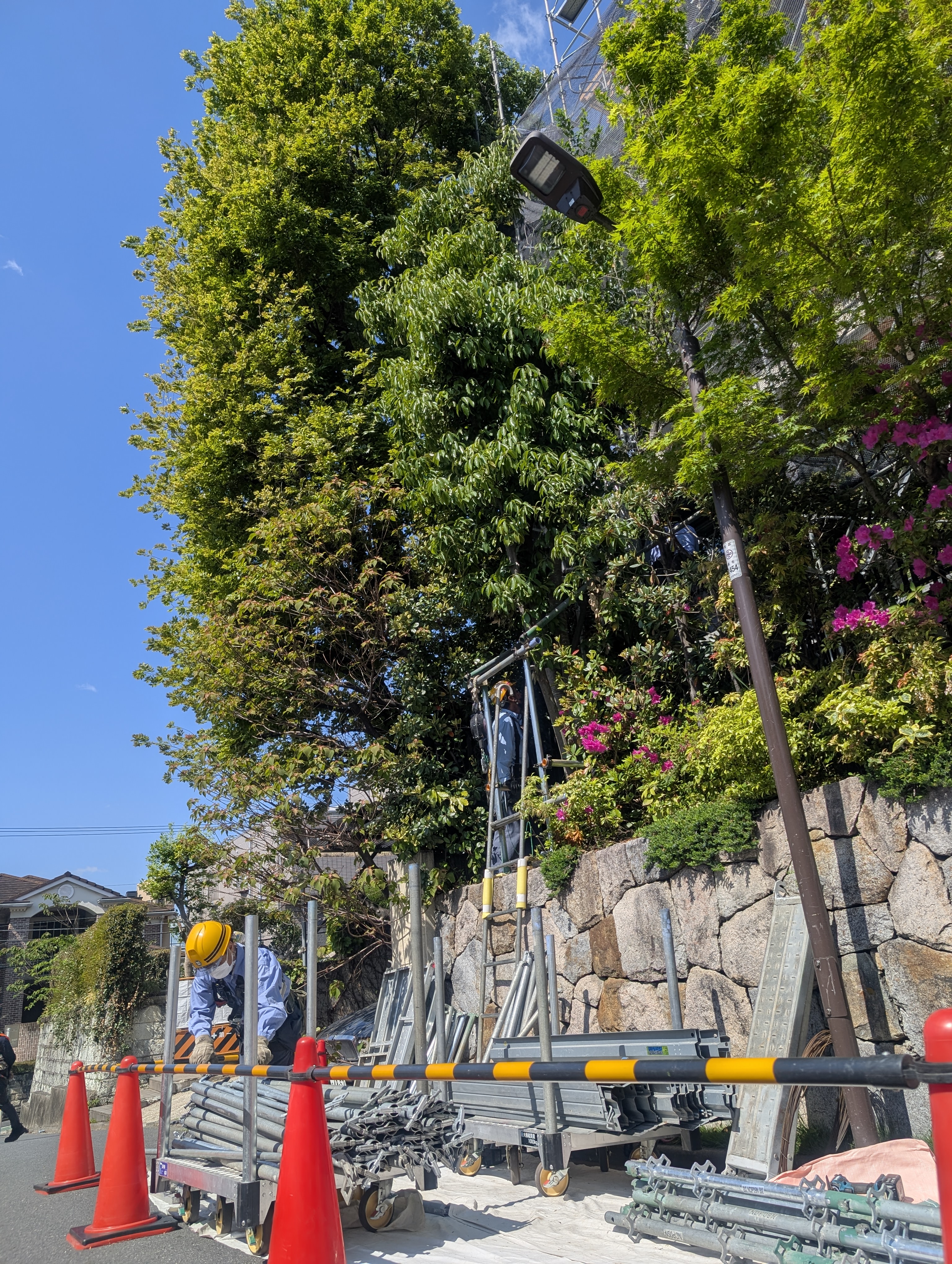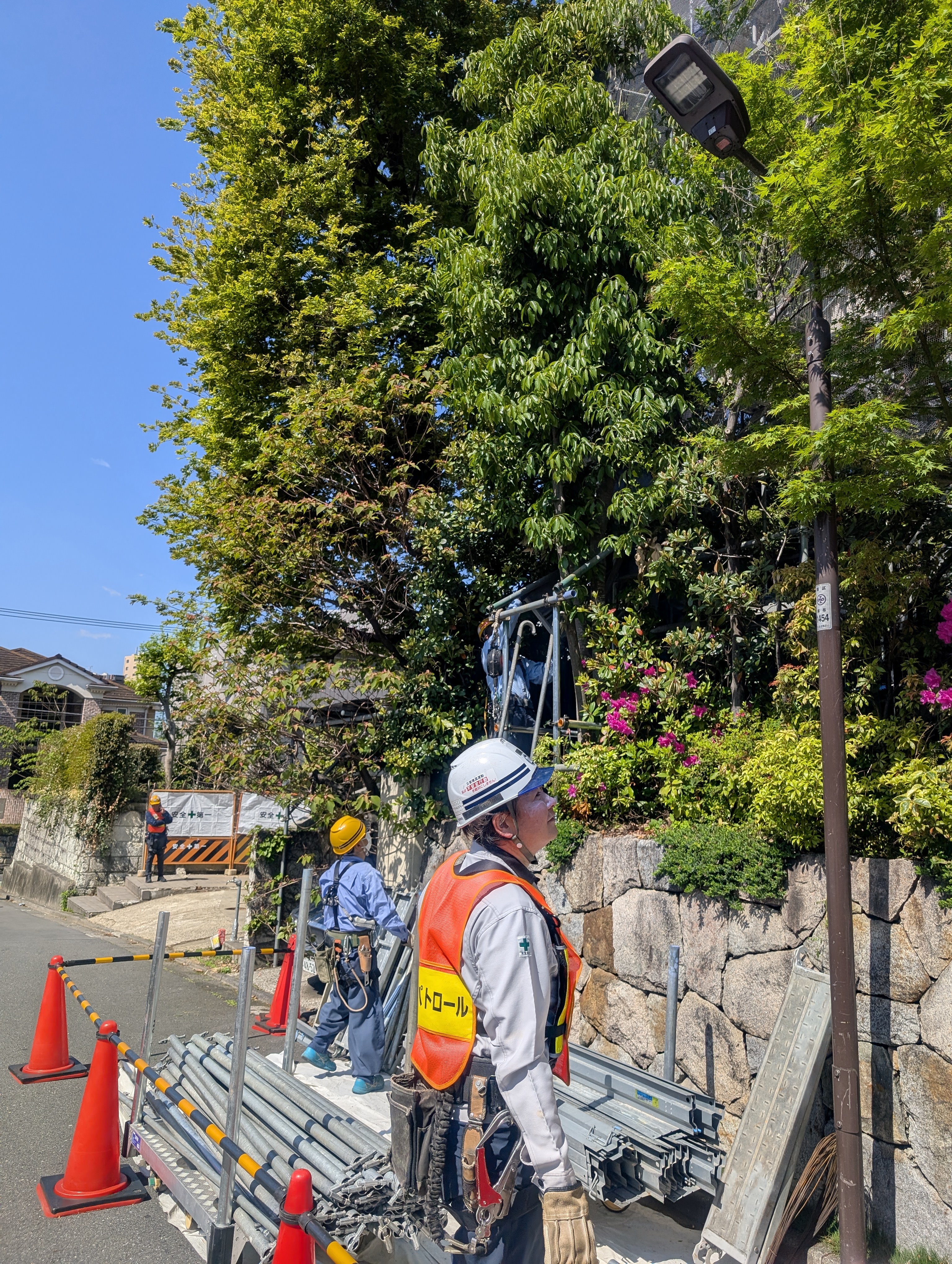 道路使用での資材仮置き、搬出作業なので、第三者の通行及び